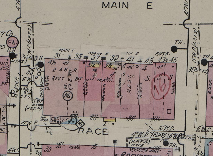 This 1892 Sanborn map confirms that the dark, ornate fronts of 37 and 39 East Main Street were in fact galvanized iron!