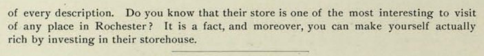 Undated, but seemingly from the same period as the previous photograph; Flower City Brewing “Maltop” Stock Beer ad makes it likely 1907-1909.