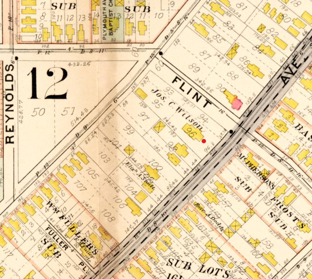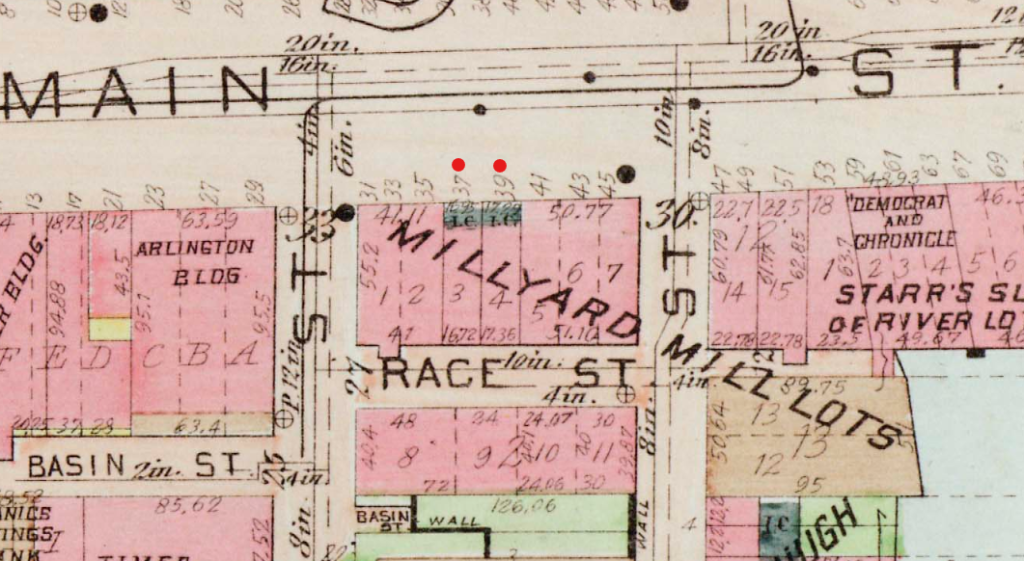 The area in 1875 per the city atlas. 37 & 39 are 11 and 13. They are owned by John Everts Morey and “F. Seifried”, respectively.