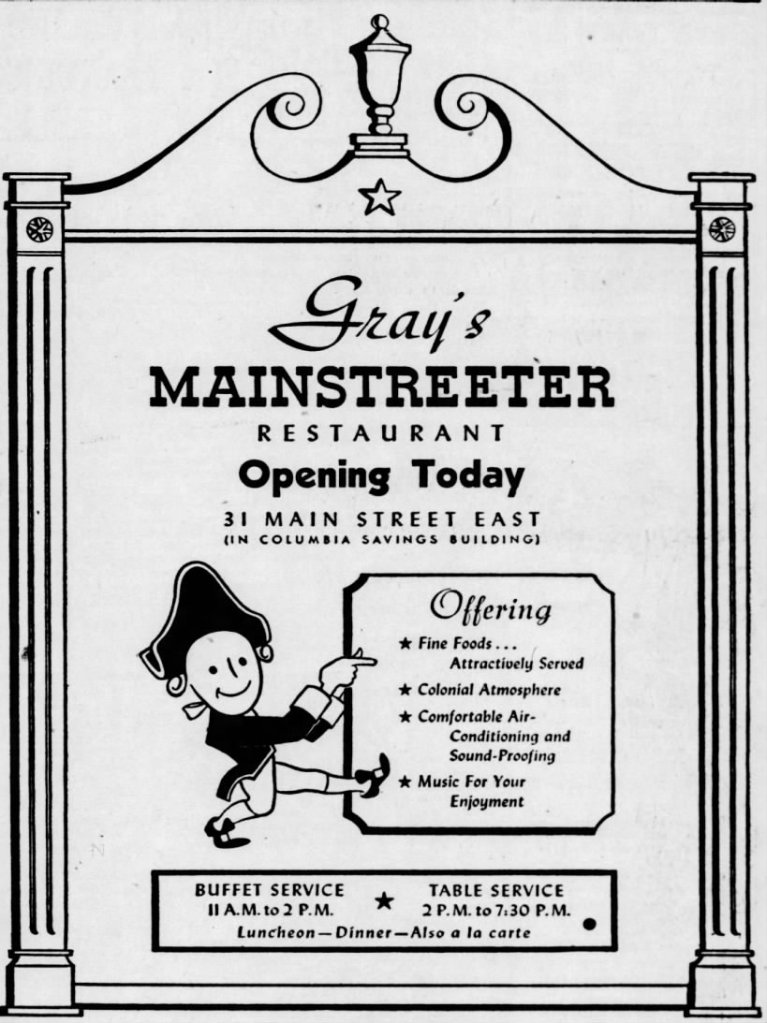 The Mainstreeter was located at 31 Main St. East, but extended under 37. It was to remain open according to this article, however an obituary for the owner contends it was closed in 1955.