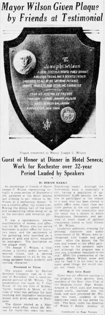 Joseph C. Wilson would become Rochester’s 52nd Mayor from 1927-1930.