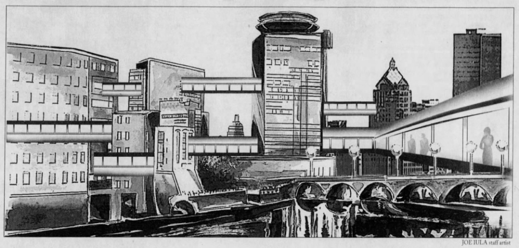 Turns out the reality was much less romantic, and much more of a political struggle. Despite dreams of a walkable, interconnected city, most of what we got were pared-down in cost and effectiveness, leaving many to conclude the walkways to be more civic boondoggle in a city already plagued with boondoggle.
