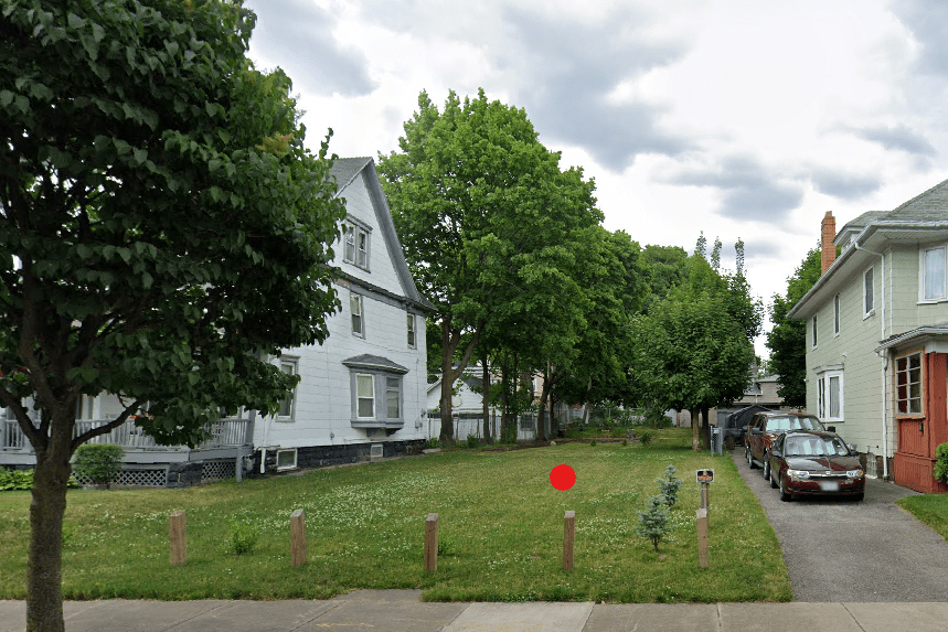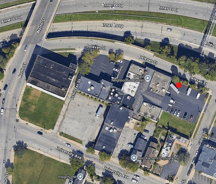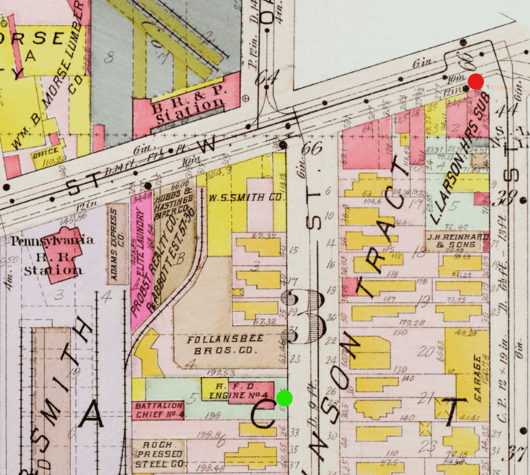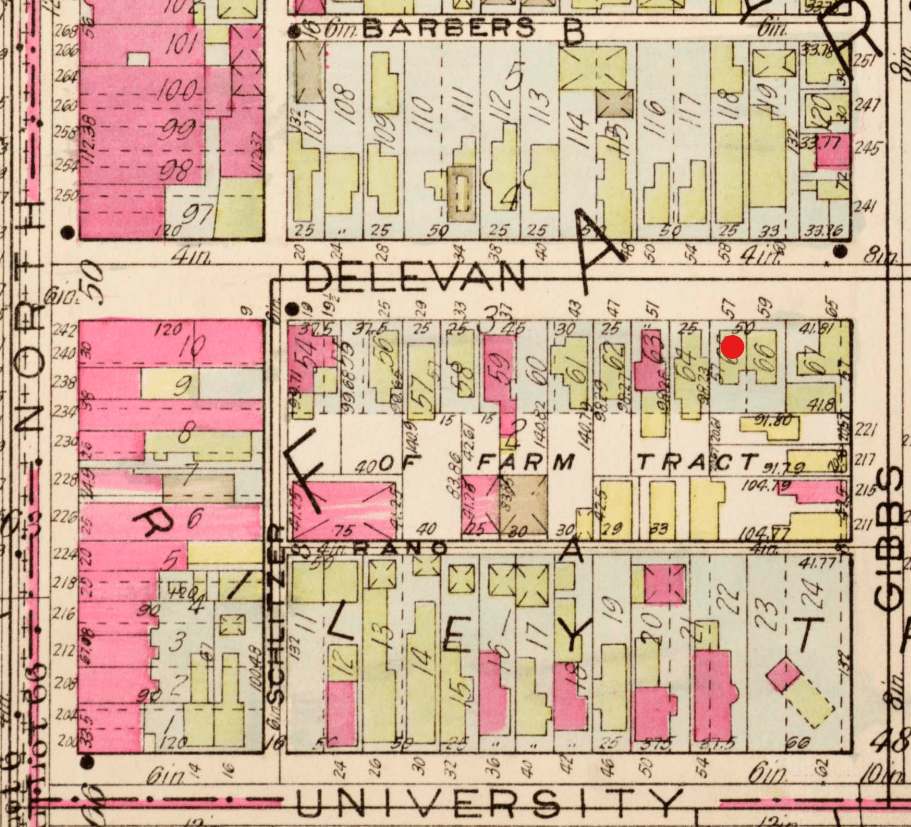 Red: Former site of No. 57 Delevan Street.