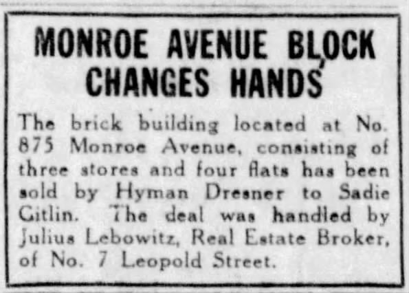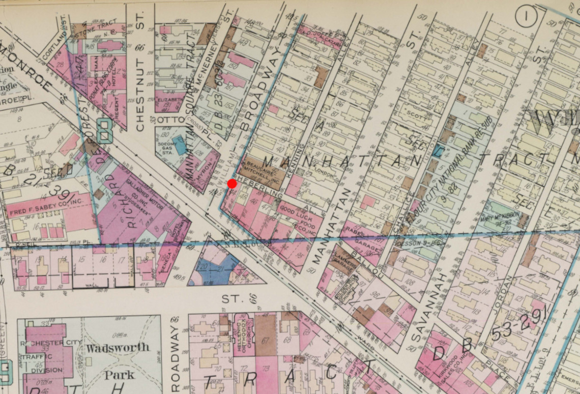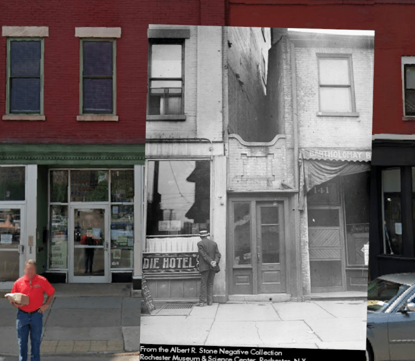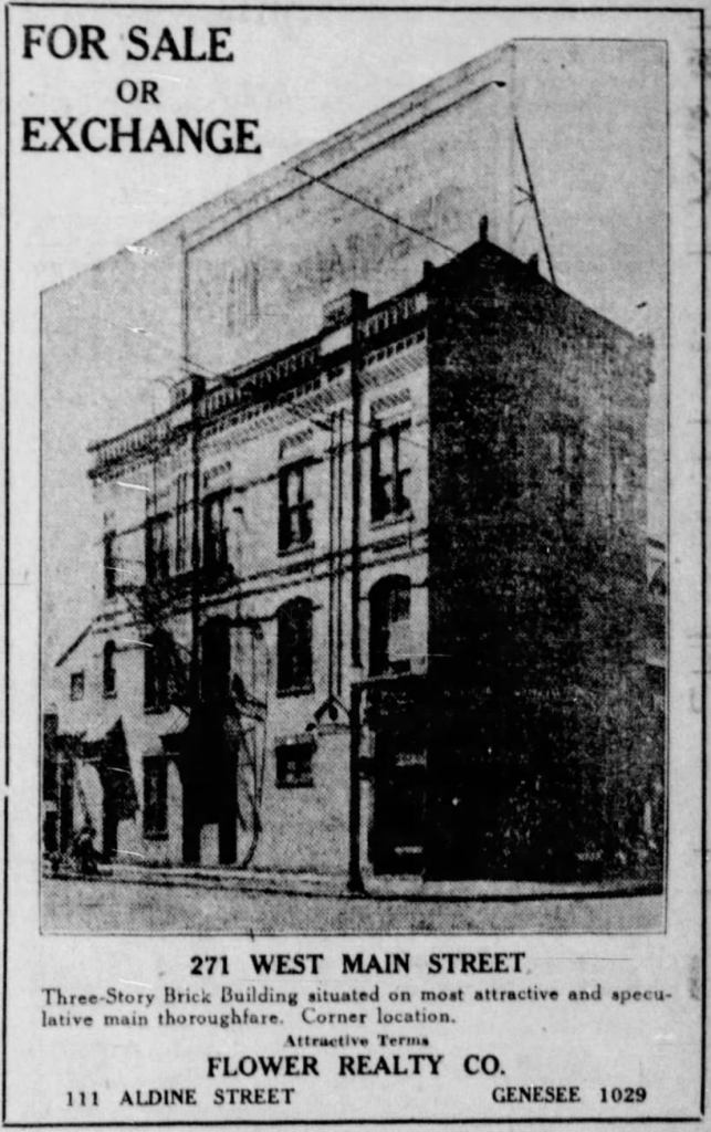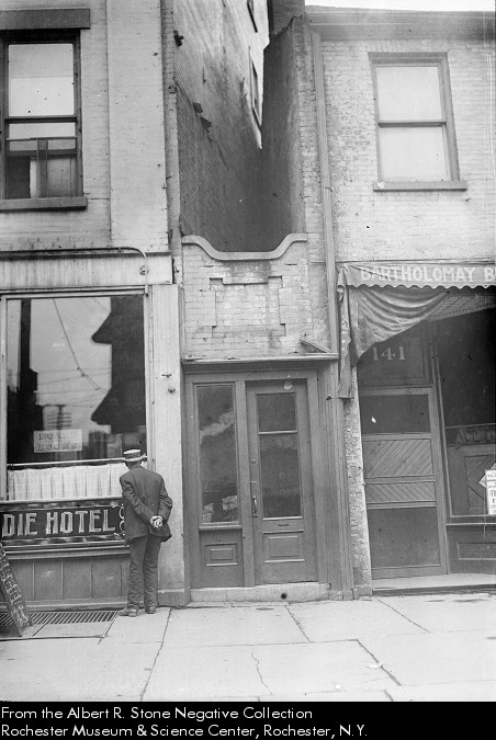 In 1928, the Times-Union published a piece about memories of Rochester. Included in that article was an entry on the “Hole in the Wall”, which this small storefront apparently was called. Although I never saw any other source use the name, it was cute enough that I decided to adopt it.