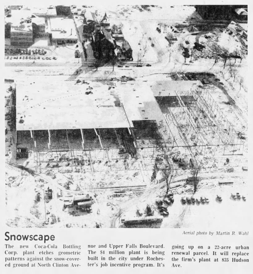 All of this area was severely changed in the name of urban renewal. Huge swathes of the old neighborhood were razed, ostensibly to beautify the Upper Falls Boulevard corridor. Over the old home of Patrick Coyle on Cole Street, the Coca-Cola Beverages campus stretched, built in 1976.