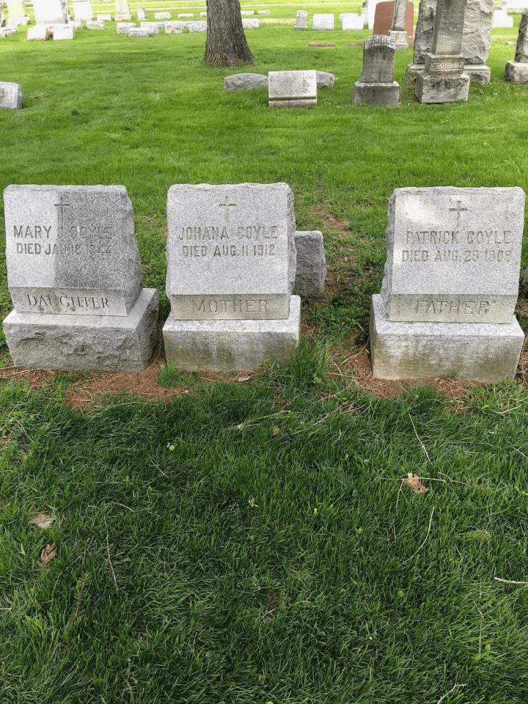 The graves of Patrick, Johana Hayes, and Mary J. Coyle at Holy Sepulchre Cemetery.
