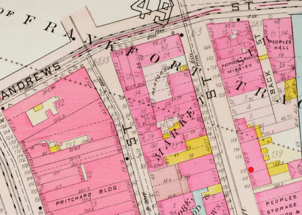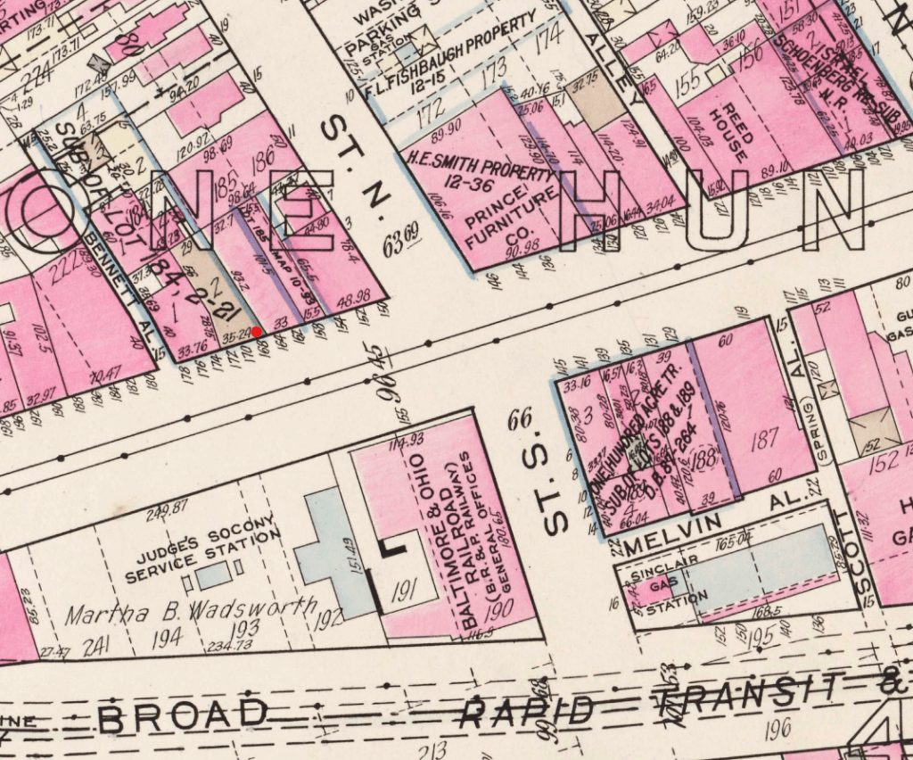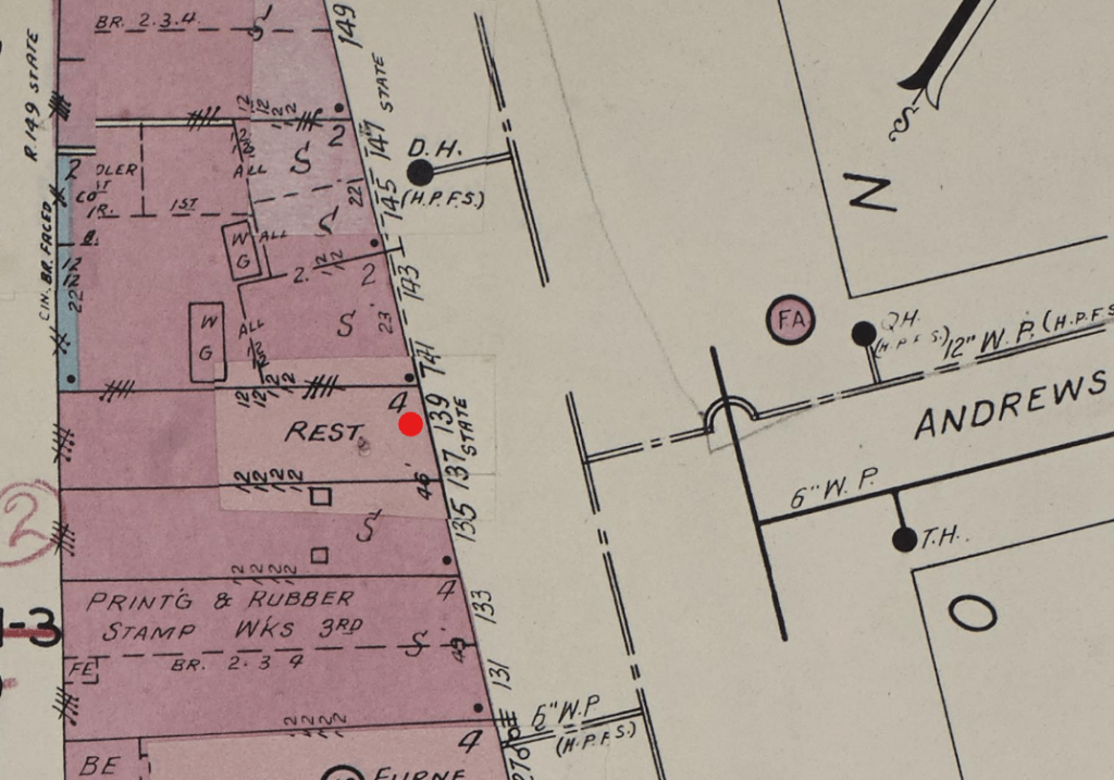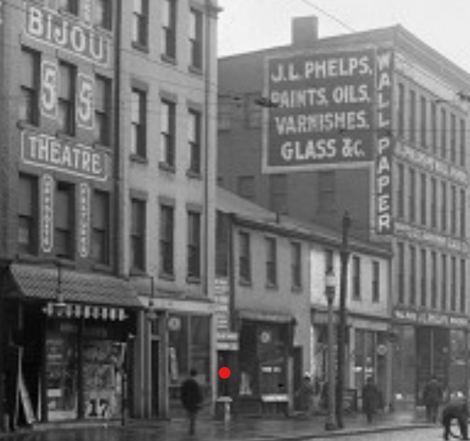 Red: No. 111½ State Street, the “Hole in the Wall”.