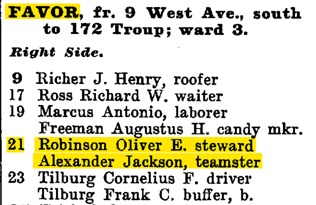 Regardless, Robinson would continue to live with Alexander at No. 21 Favor Street until 1912, when he moved to No. 198 Troup Street.