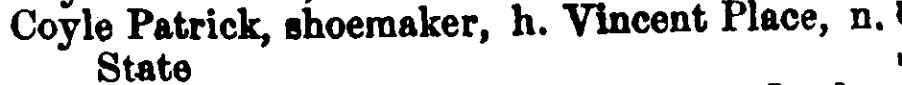 The tenant with the longest tenure in the narrow State Street niche was Patrick Coyle, a cobbler from Ireland, whose business was based there for nearly forty years between 1864 and 1900.
