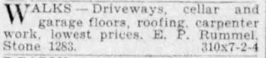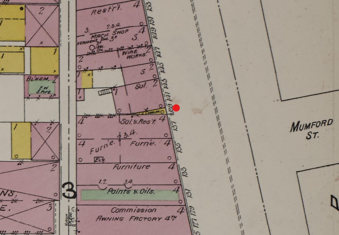 Briefly, the closet-sized storefront was utilized by Edwin Peter Rummel, a cartman or carpenter, a handyman. Edwin was from Dayton, Ohio, youngest son of two immigrants from Hanover, Saxony.