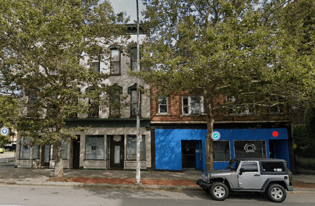 Red: Former No. 168 West Main, now No. 172 West Main, former tattoo shop of Ray Millard.