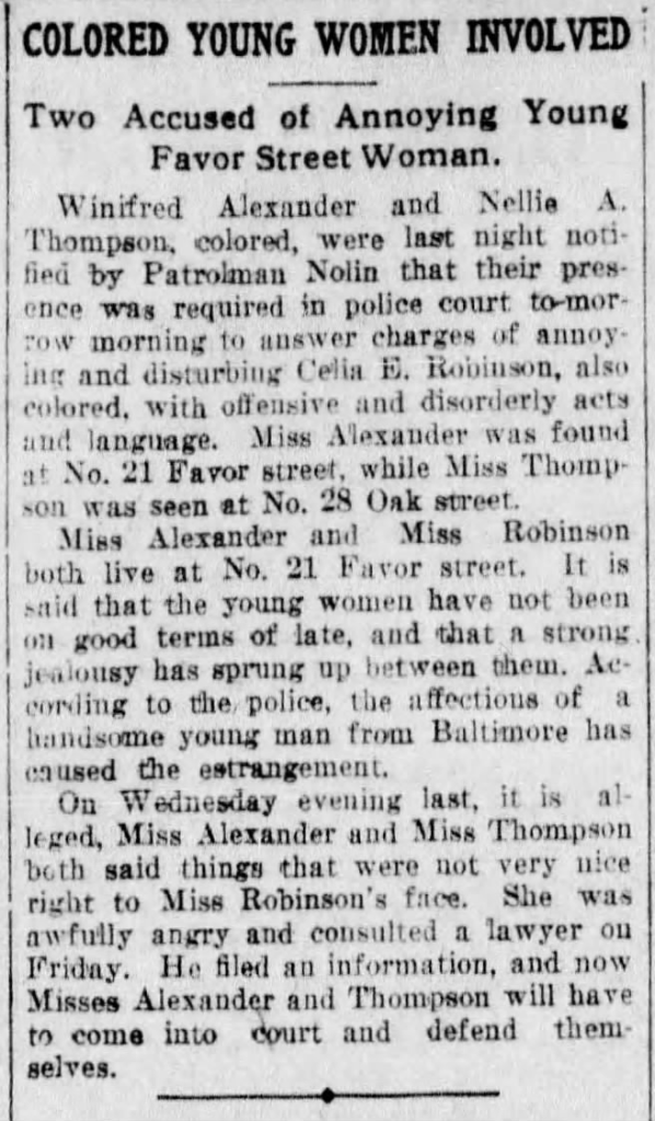 On March 16th, 1905, Robinson would marry Celia E. Alexander, and they would move in together at No. 21 Favor Street, where Celia was boarding with Jackson Alexander and his wife Winifred.