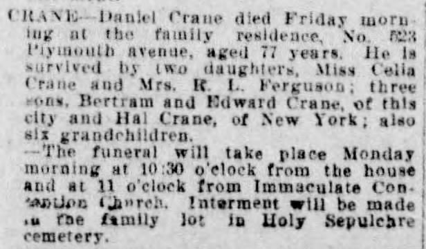 Crane would remain until 1905, at which point he’d move his business to No. 364 Plymouth Avenue.