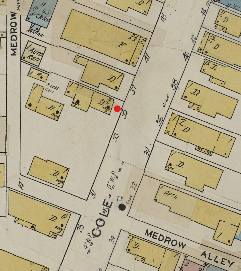 Red: Former site of No. 35 Cole Street.